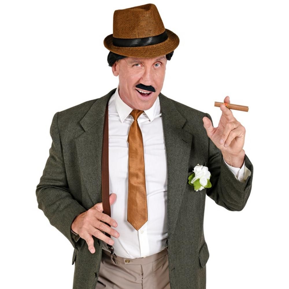 THE ROARING 20s FASHION (hat, braces, tie, moustache, cigar)