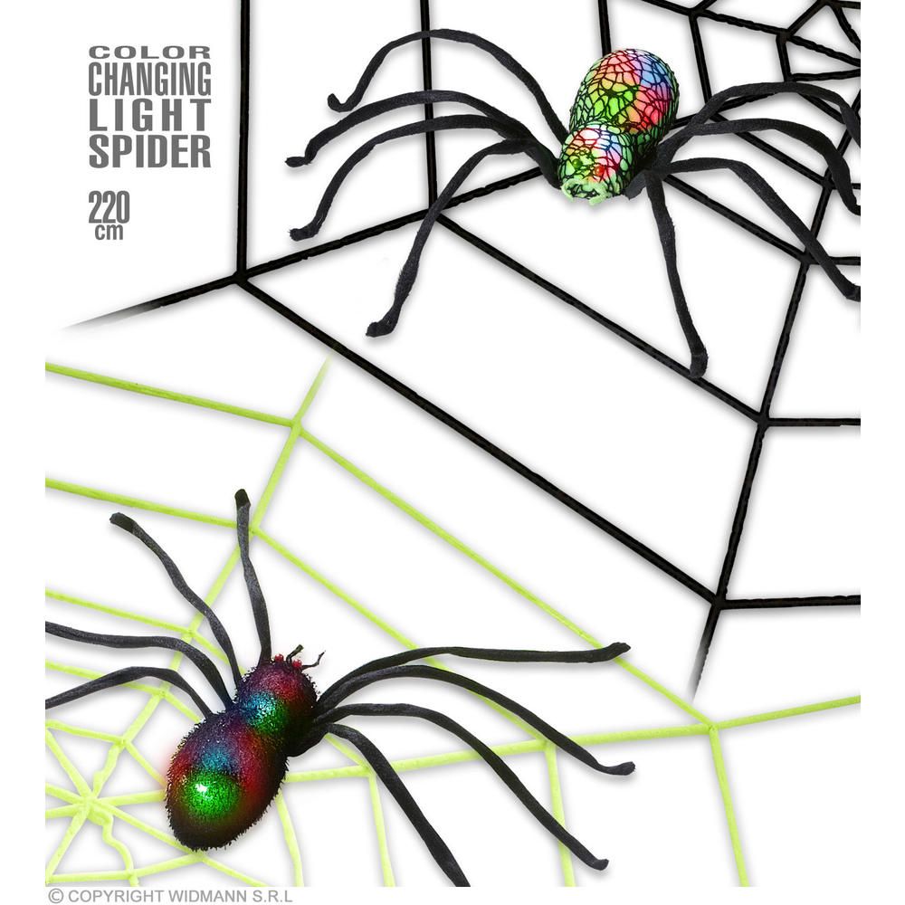GIANT CHENILLE SPIDERWEB WITH CHANGING COLOR LIGHT SPIDER 220 cm - 2 colors assorted