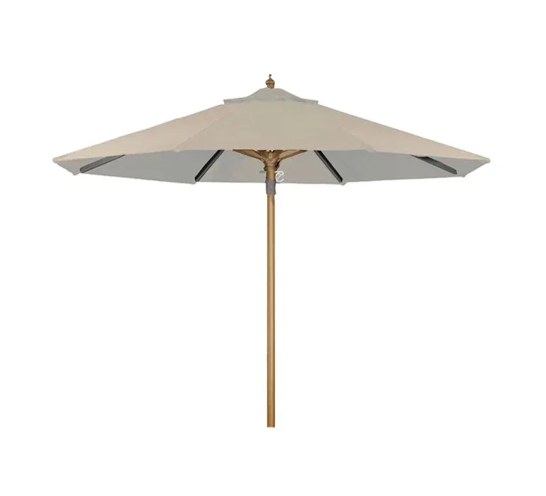Ομπρέλα με ανοδιωμένο σκελετό αλουμινίου ασημί, διαμέτρου Ø 2,5m μεμονοκόμματο ιστό και 8 ακτίνες. Σύστημα ανύψωσης με διπλά ζεύγη ράουλων.