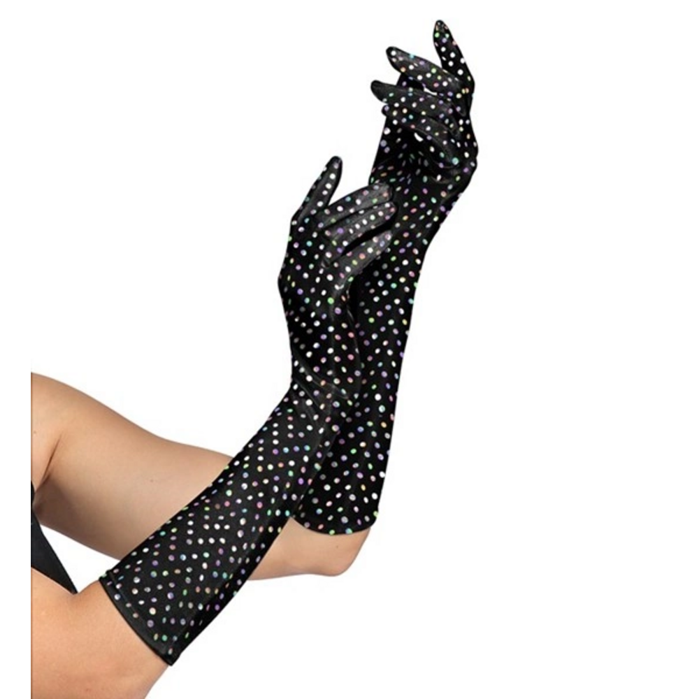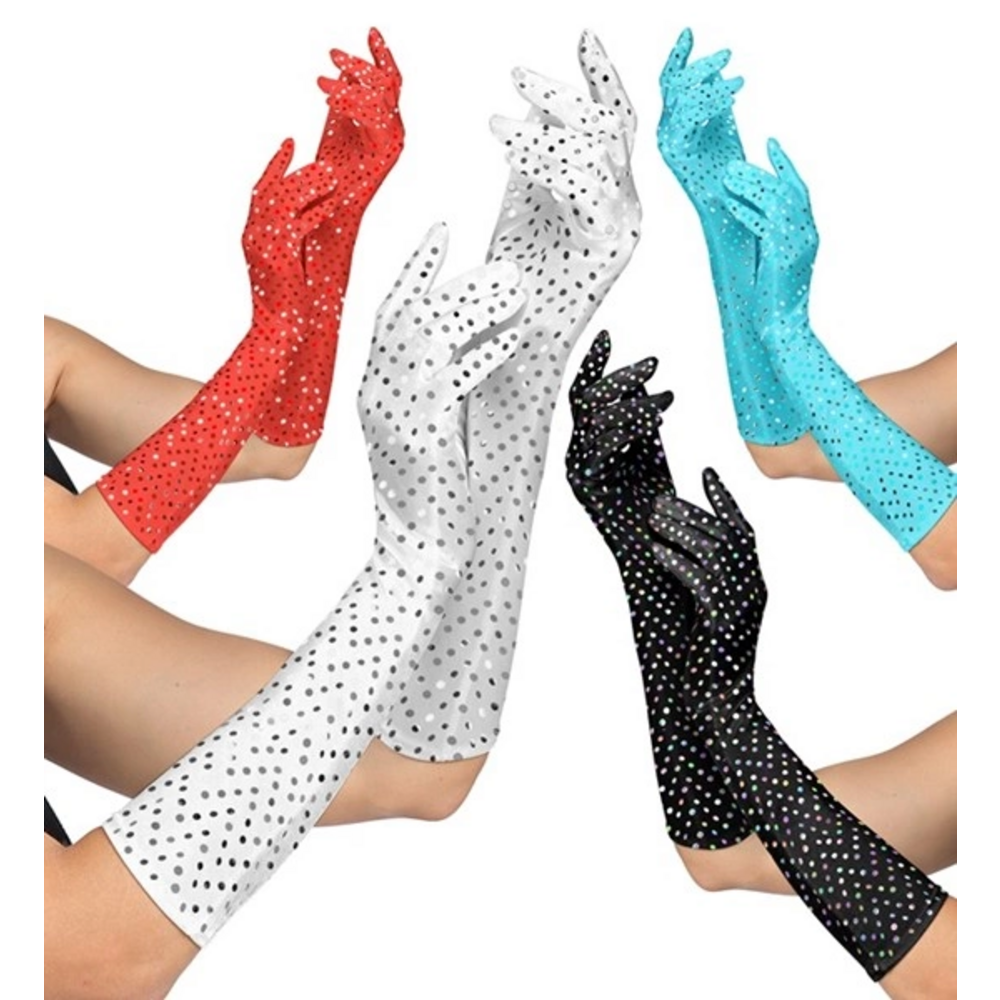 Pk 8 SEQUIN GLOVES 41 cm - 4 colors ass.: 4 bla