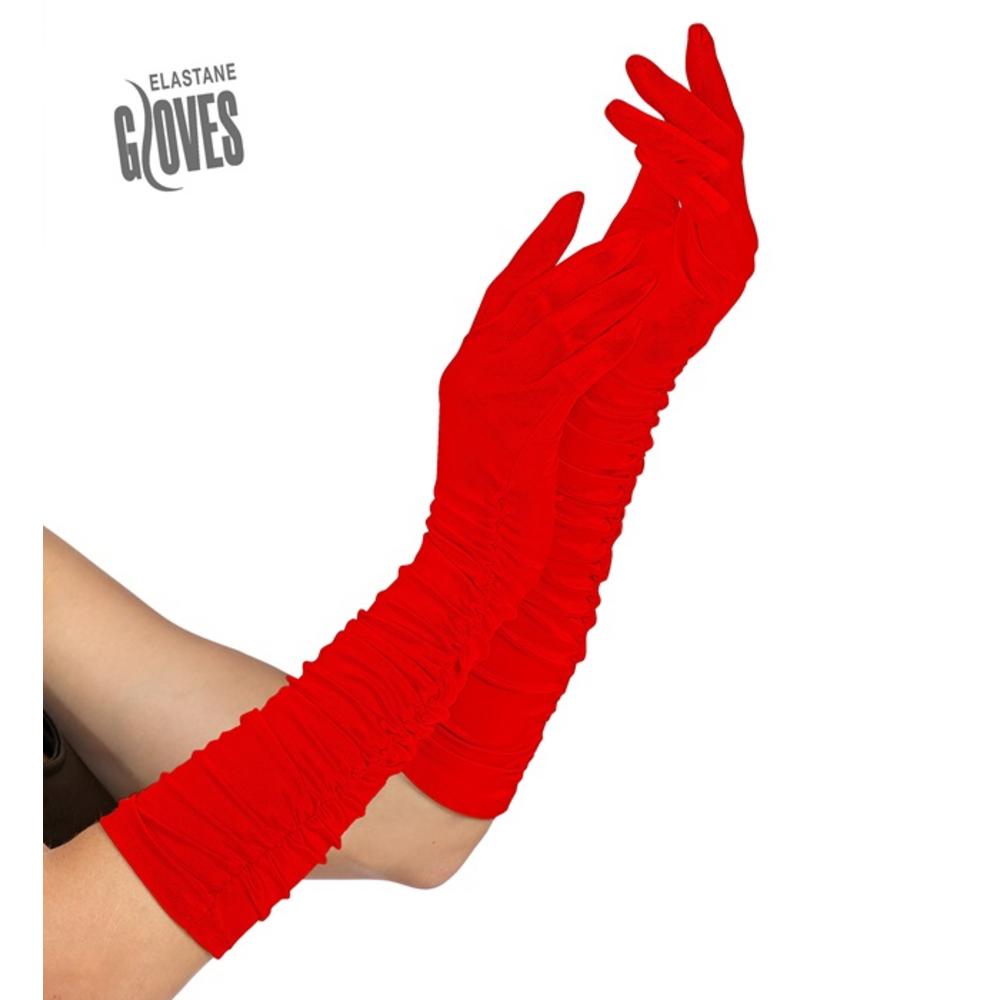 RED LONG PLISSÉ ELASTANE GLOVES 40 cm - suitable also for man