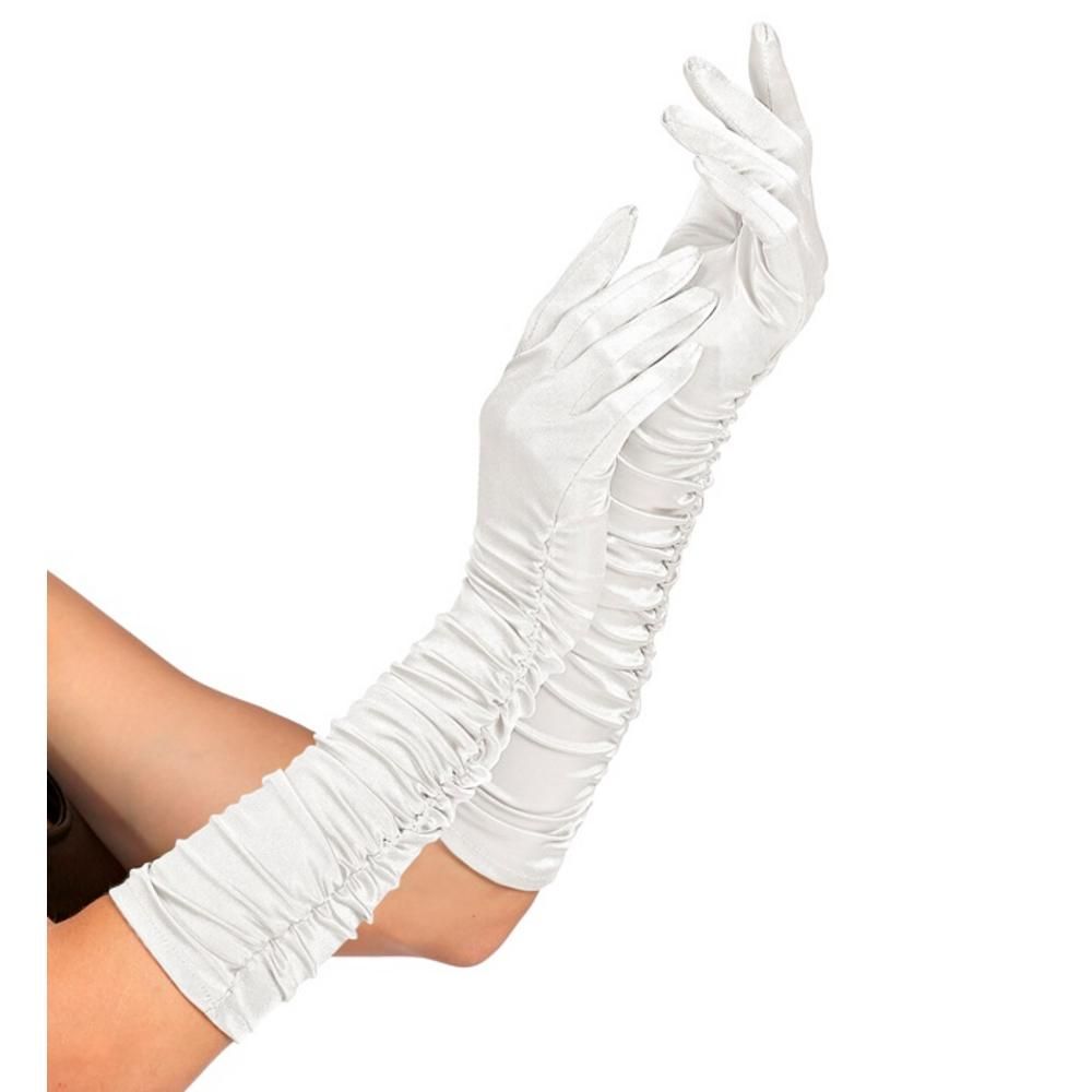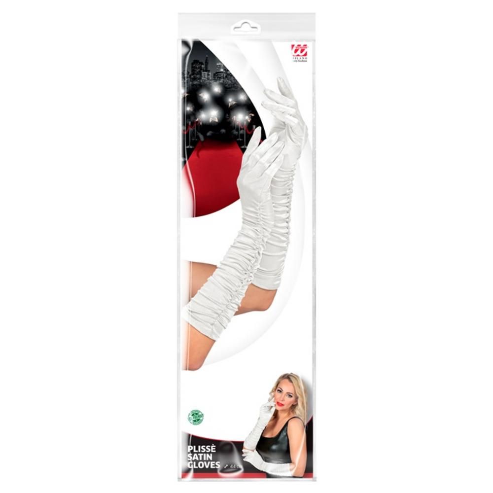 WHITE PLISSÉ SATIN ELASTANE GLOVES 44 cm