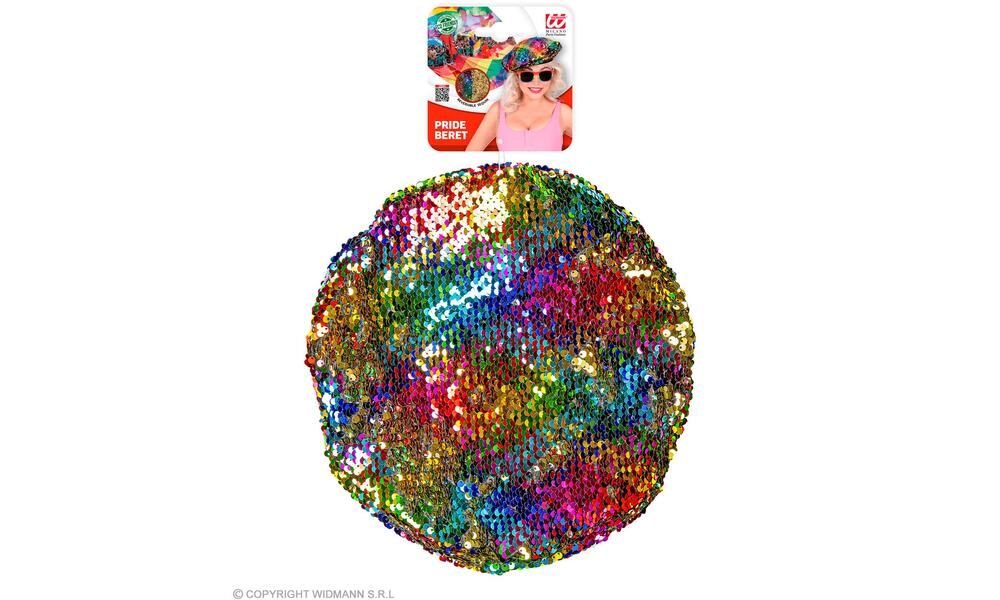 REVERSIBLE RAINBOW/GOLD SEQUIN BERET