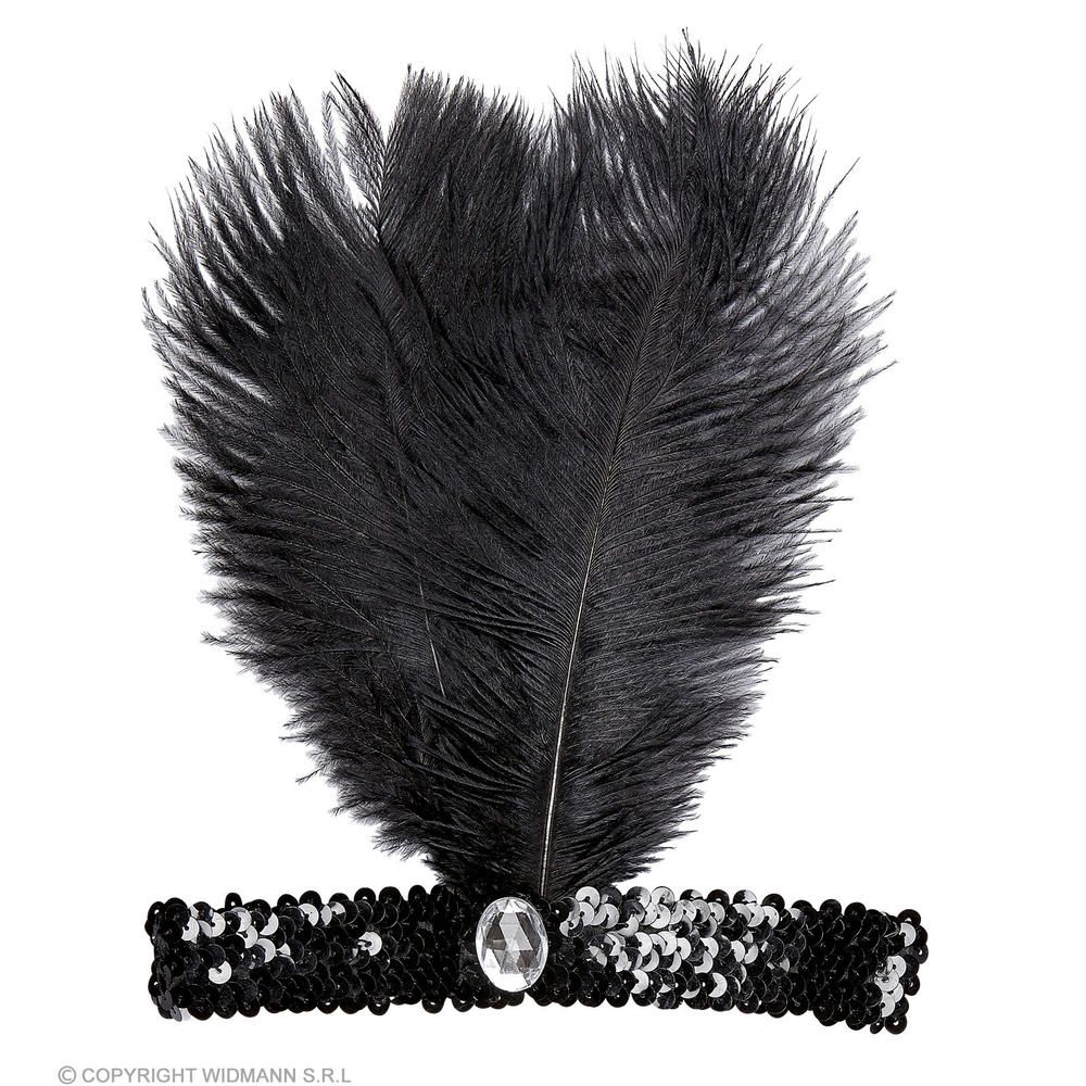 BLACK SEQUIN HEADBAND WITH 2 FEATHERS & GEM