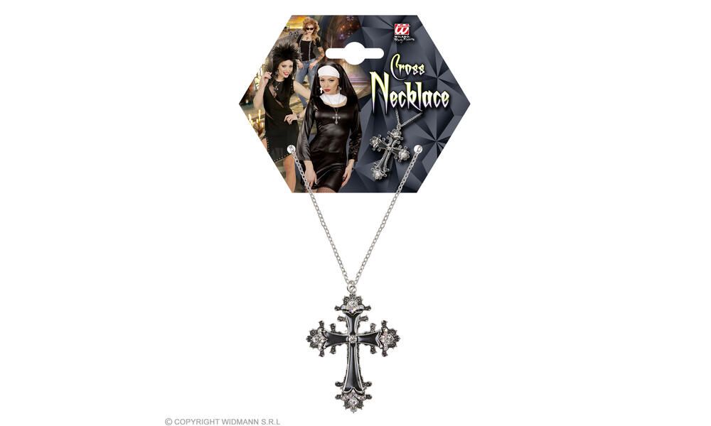 BLACK CROSS NECKLACE WITH STRASS