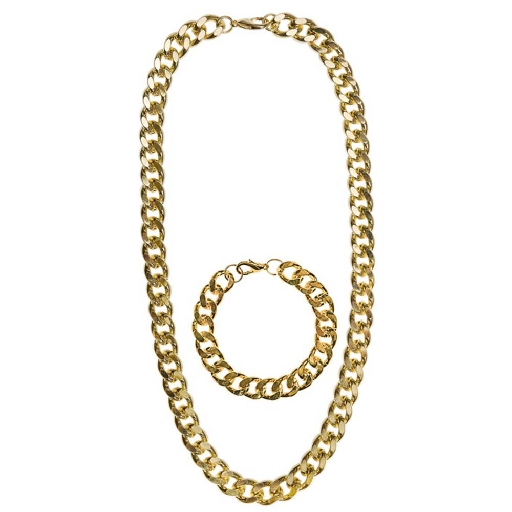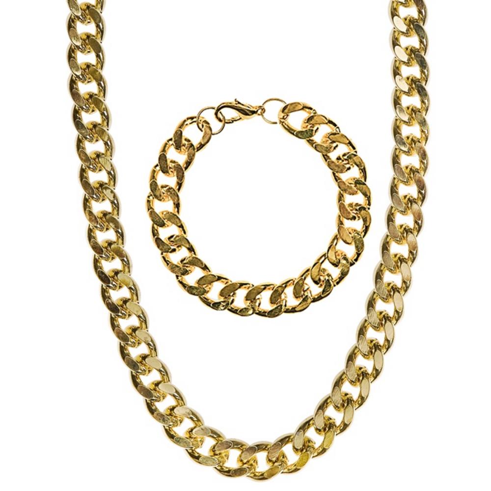 GANGSTER / RAPPER / PIMP SET (gold necklace & bracelet)