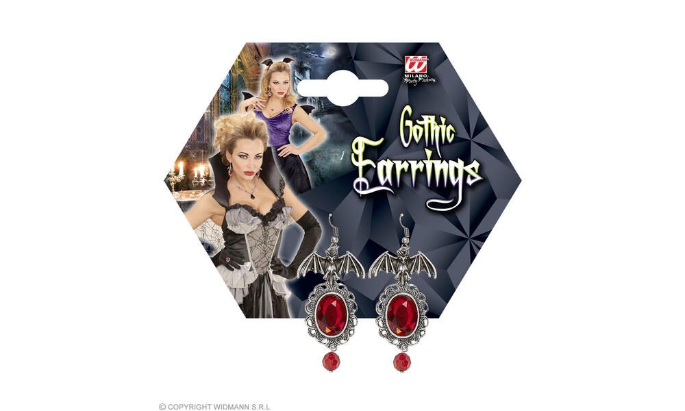 Pair of BAT EARRINGS WITH RED GEMS