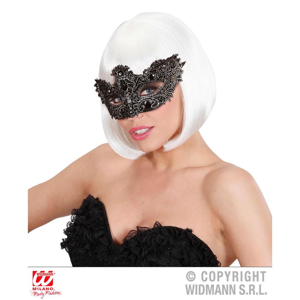 ANTIQUE SILVER NOBLESSE LACE EYEMASK DECORATED WITH GEMS