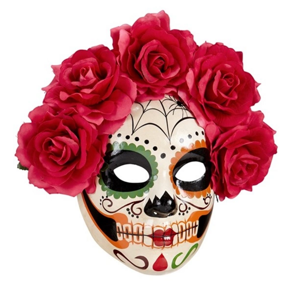 DIA DE LOS MUERTOS MASK DECORATEDWITH RED ROSES