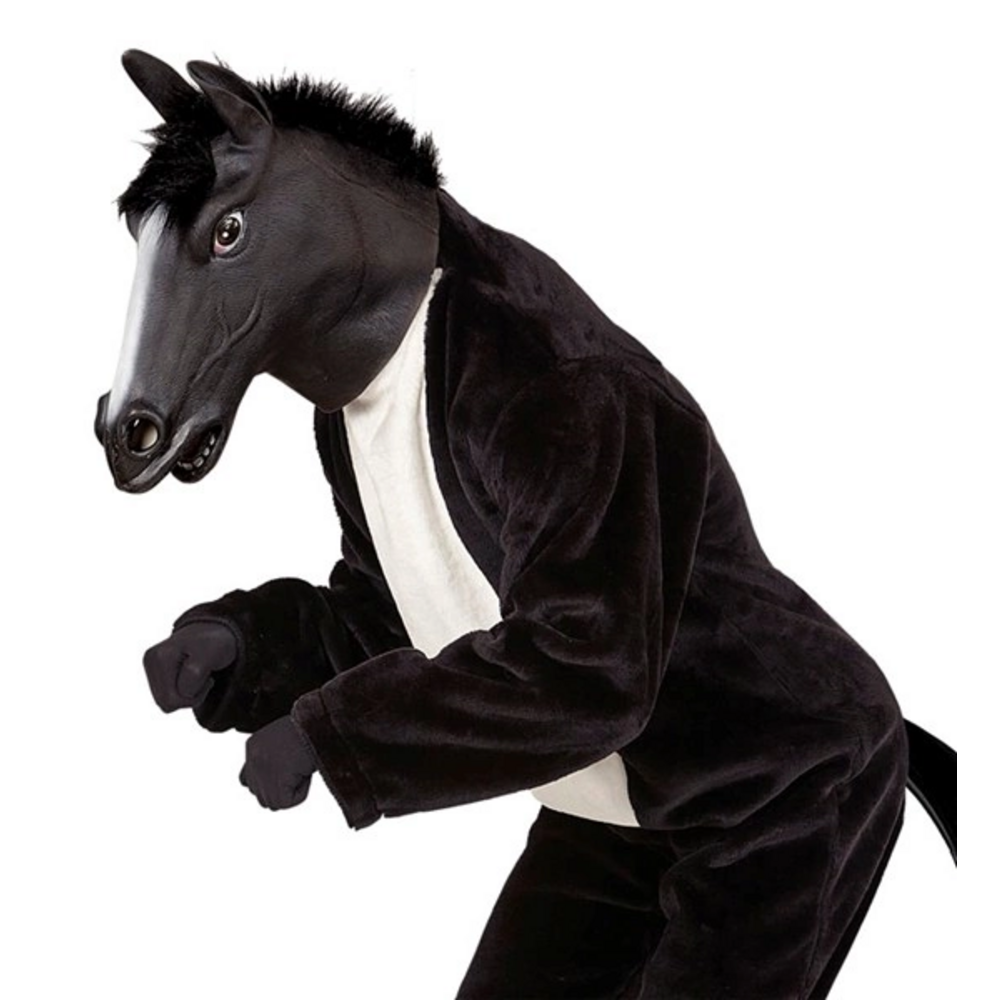 BLACK HORSE FULL HEAD MASK WITH PLUSH HAIR