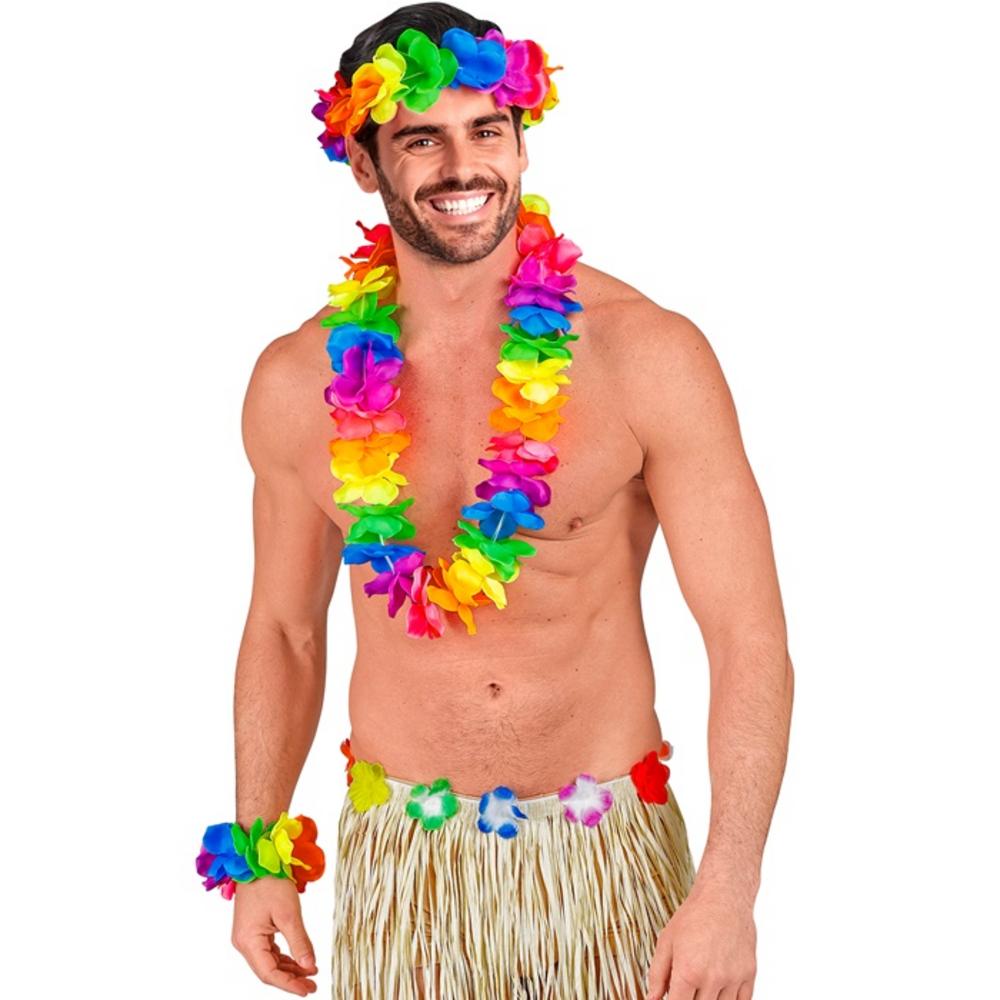 MULTICOLOR HAWAIIAN SET (lei, crown, bracelet)