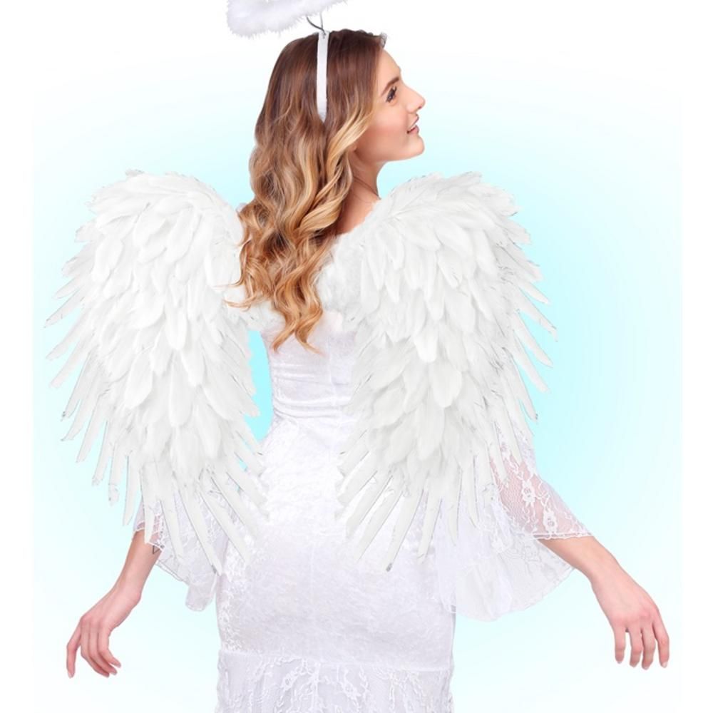 WHITE FOLDABLE FEATHER WINGS 80X60 cm