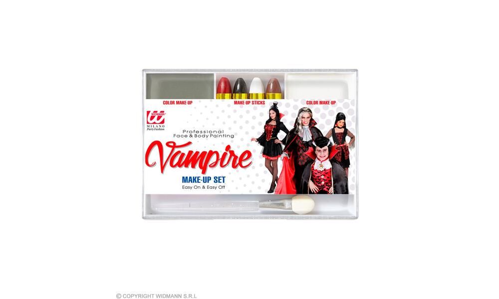 "VAMPIRE MAKEUP SET" (4 makeup sticks. grey white makeup in tray. applicator)