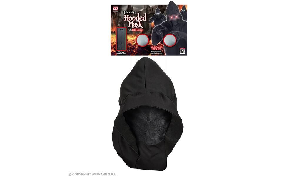 "FACELESS HOODED MASK WITH RED FADE-IN FADE-OUT LIGHT-UP EYES"