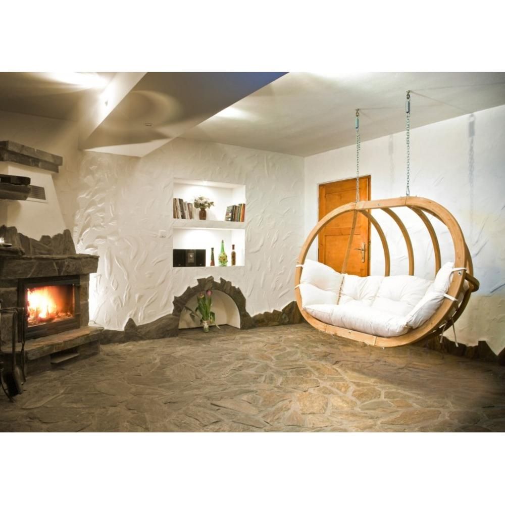 Χειροποίητος κρεμαστός καναπές - αιώρα από επεξεργασμένο ξύλο ερυθρελάτης, ιδιαίτερης αντοχής σε καιρικές συνθήκες και βάρος, που εγγυάται μέγιστη σταθερότητα και ασφάλεια. Ιδανική κατασκευή τόσο για εσωτερικούς, όσο και για εξωτερικούς χώρους. Μεταφέρεται πολύ εύκολα. Το μεγάλο μαλακό μαξιλάρι, διατίθεται σε διαφορετικές γήινες αποχρώσεις και υπόσχεται ιδανική χαλάρωση. Το σύγχρονο design του Globo Royal προσφέρει υψηλής αισθητικής αποτέλεσμα και προσδίδει προστιθέμενη αξία στον χώρο που τoν φιλοξενεί.