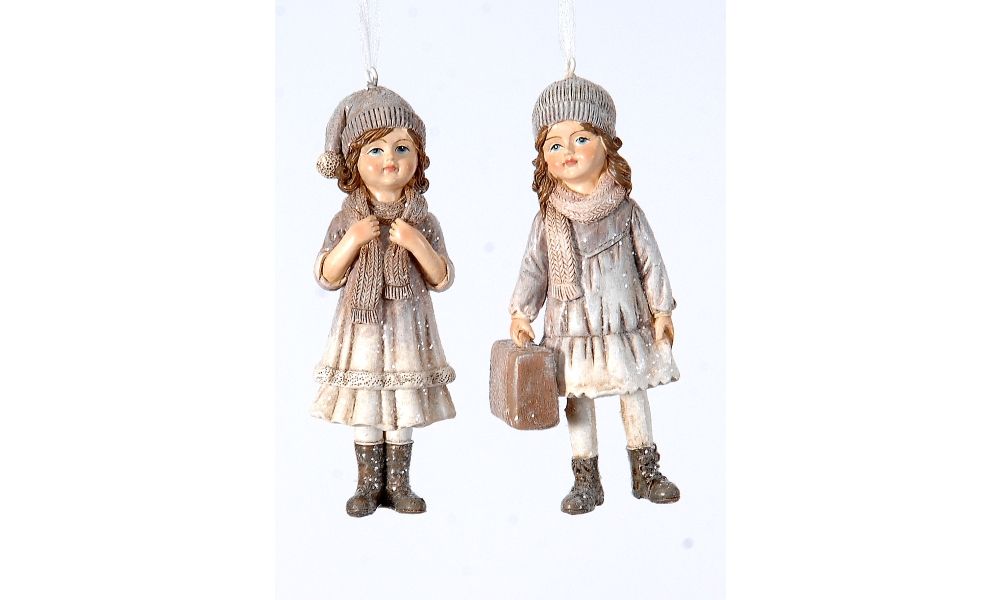 12/144-2Asst 12cm Polyresin girls w/scarf,suitcase orn